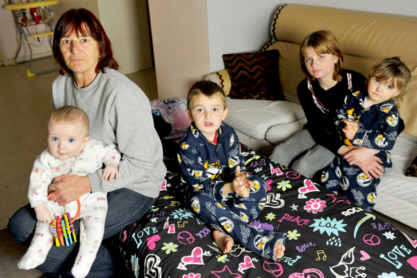 Dianne (pictured with Ryan, Alivia, Joshua and Maddison) has custody of the children, aged from six months to 11 years, because her daughter suffers mental health issues. “When I get up for the baby during the night, I’ve got to be careful I don’t trip over the beds and topple them out,” she says.